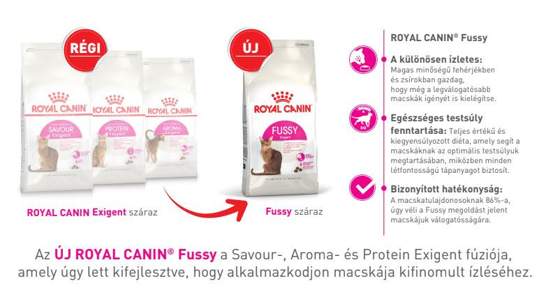 A ROYAL CANIN® Savour Exigent tápot kifejezetten ezeknek a különleges igényeknek a szem előtt tartásával állították össze. Egyes válogatós macskák számára vonzó lehet, ha etetőtáljukban többféle ízű táplálék van. A macska természetes ízlésének kielégítése érdekében a Savour Exigent táp két, egymás hatását kiegészítő tápszemcsét tartalmaz, melyek összetétel és állag tekintetében is eltérnek, így felerősítik a kétféle íz érzékelését és serkentik az étvágyat még a legválogatósabb macskák esetében is.