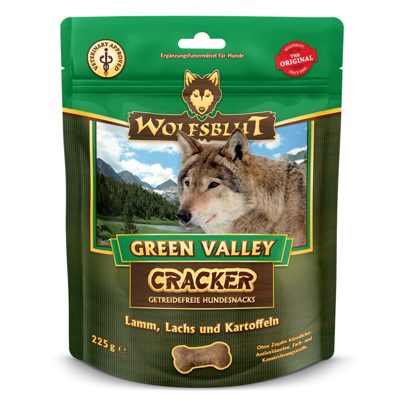 A Wolfsblut típusú táplálékkal kombinálva a Green Walley Crackers minden tekintetben egészséges és a fajnak megfelelő étrendet biztosít kutyájának. Ennek az egyedülálló kombinációnak minden összetevője a védence egészségének megőrzését szolgálja. A Wolfsblut Green Walley Crackers allergiára hajlamos kutyák és allergiás betegek számára is alkalmas.
